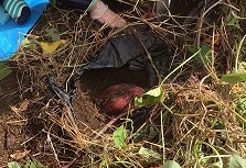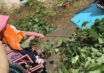 10月半ばのいもほりでは、つるを引っ張ると大きないもがたくさん採れました。